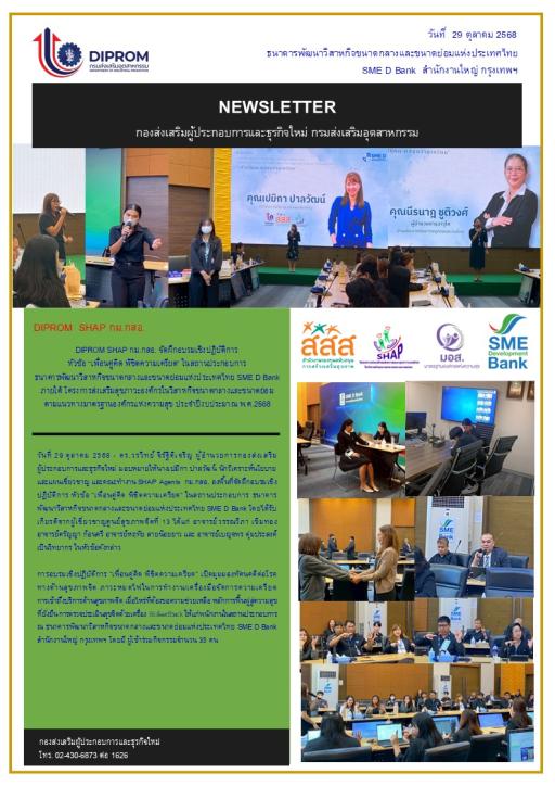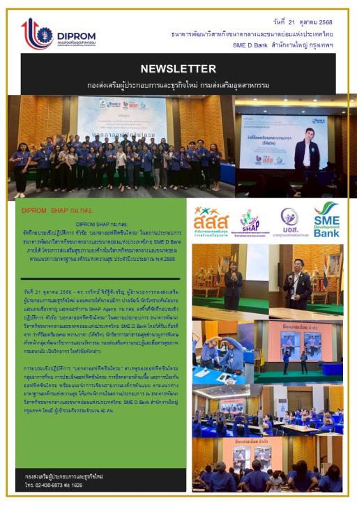 DIPROM SHAP กม.กสอ. จัดฝึกอบรมเชิงปฏิบัติการ หัวข้อ "เพื่อนคู่คิด พิชิตความเครียด" ในสถานประกอบการ ธนาคารพัฒนาวิสาหกิจขนาดกลางและขนาดย่อมแห่งประเทศไทย SME D Bank