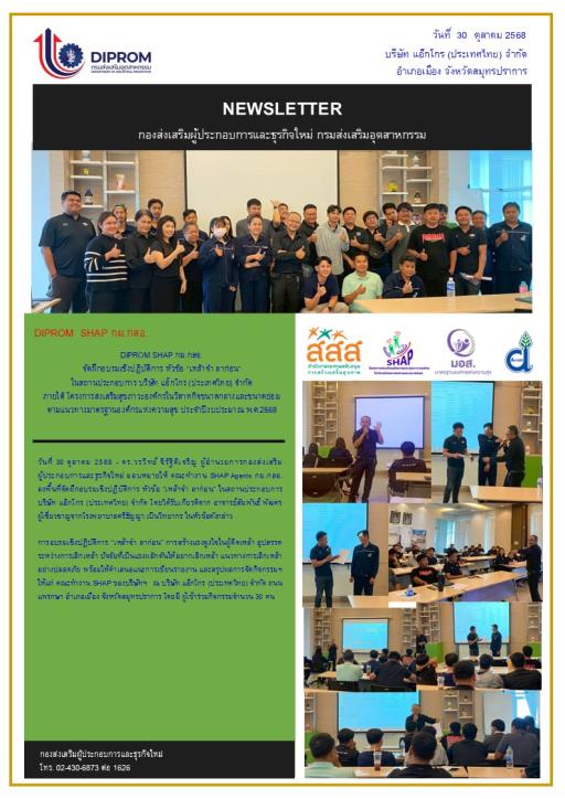 DIPROM SHAP กม.กสอ. จัดฝึกอบรมเชิงปฏิบัติการ หัวข้อ "เหล้าจ๋า ลาก่อน" ในสถานประกอบการ บริษัท แอ็กโกร (ประเทศไทย) จำกัด
