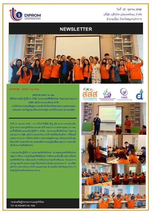 DIPROM SHAP กม.กสอ. จัดฝึกอบรมเชิงปฏิบัติการ หัวข้อ "บอกลาออฟฟิศซินโดรม" ในสถานประกอบการ บริษัท แอ็กโกร (ประเทศไทย) จำกัด