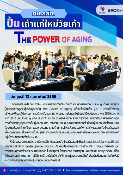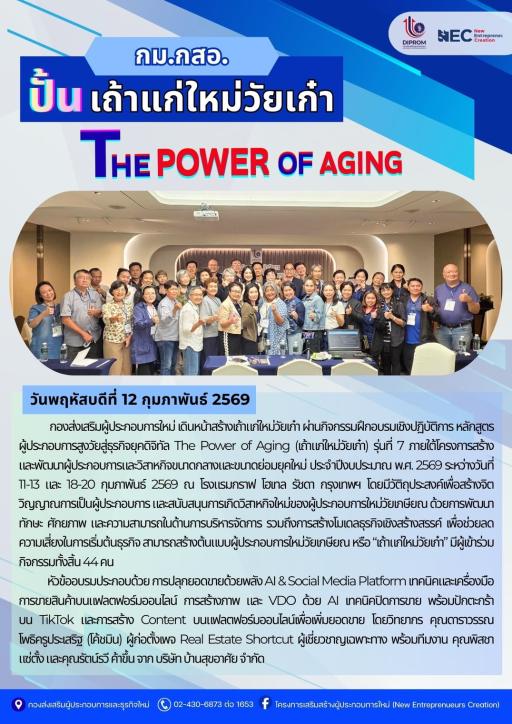 DIPROM กม.กสอ. กิจกรรมฝึกอบรมหลักสูตรสร้างผู้ประกอบการสูงวัยสู่ธุรกิจยุคดิจิทัล (เถ้าแก่ใหม่วัยเก๋า) หัวข้อ "กลยุทธ์ตลาดและการสร้างแบรนด์ สร้างโอกาสทางธุรกิจ สำหรับเถ้าแก่ใหม่วัยเก๋าในยุค Digital" ณ โรงแรมกราฟ โฮเทล กรุงเทพฯ